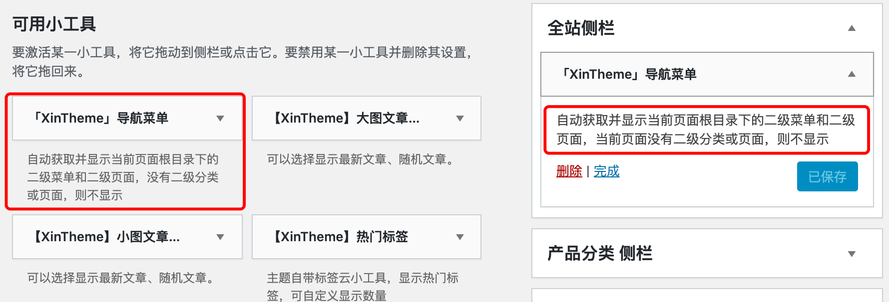 3、增加導(dǎo)航菜單小工具,可自動獲取當(dāng)前頁面根目錄下的二級頁面或者二級分類。