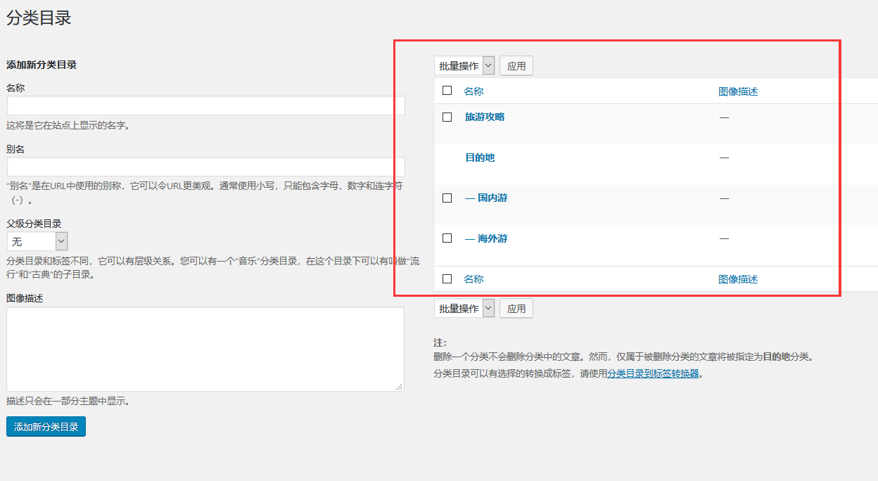 步驟(4) - 點擊添加新分類目錄后,新建的類別將顯示在頁面的右側(cè),如下面的屏幕截圖所示。