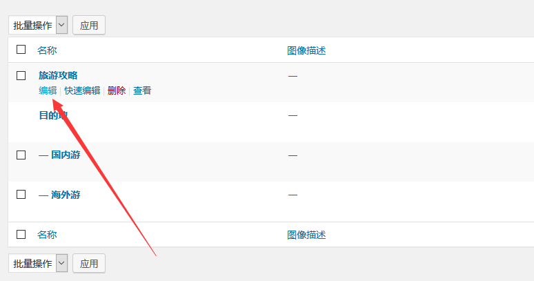 步驟(2) - 當(dāng)鼠標(biāo)懸停在分類上時,會在下方顯示幾個選項。有兩種編輯分類目錄的方法,即編輯和快速編輯