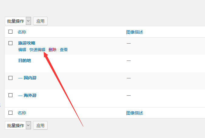 快速編輯 - 在分類目錄部分點擊快速編輯選項,如下面的屏幕所示。