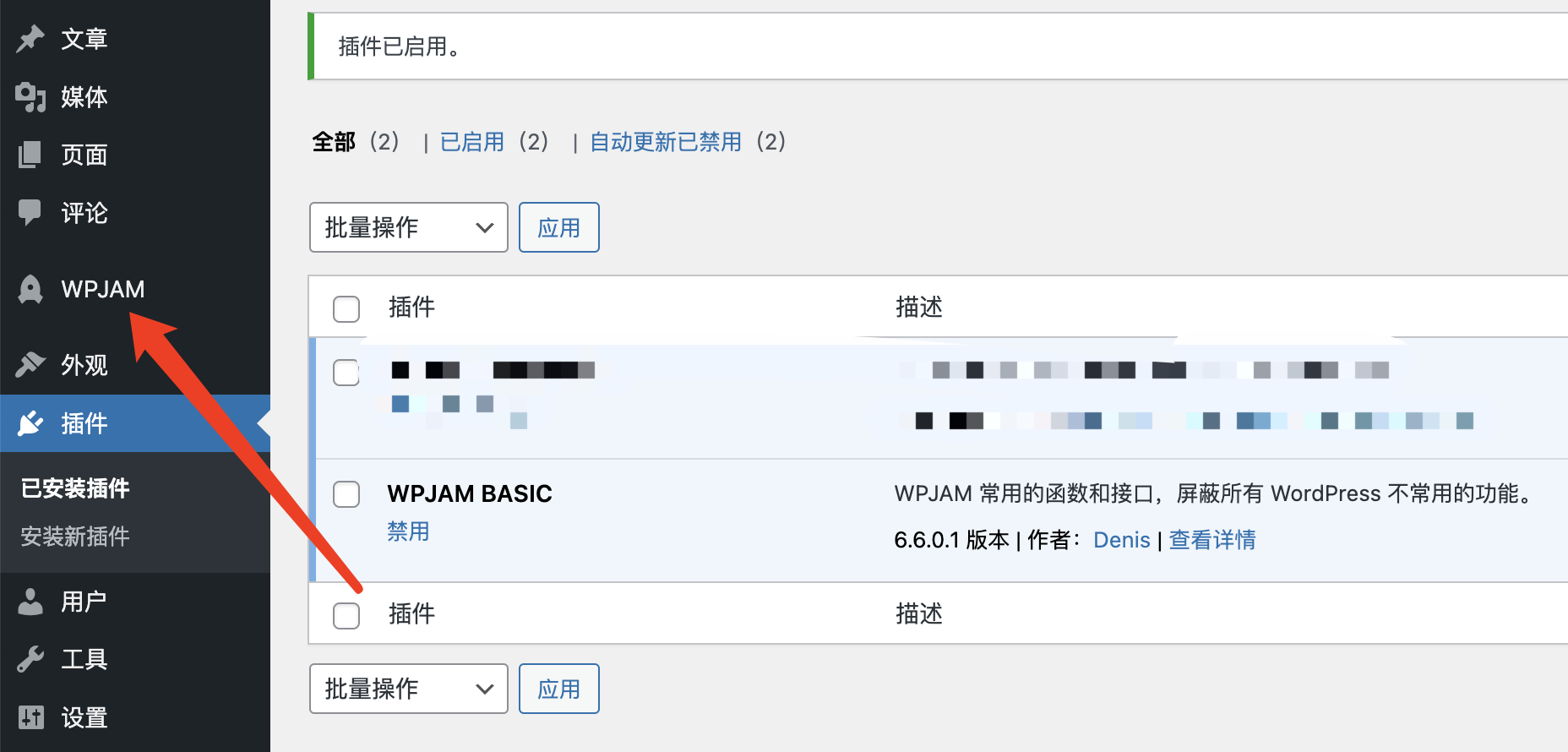 啟用后我們就會在后臺看到一個「WPJAM」菜單,至此,插件安裝成功。