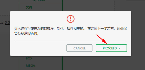 在導入過程中,系統(tǒng)會提示是否覆蓋現(xiàn)有數(shù)據,點擊“PROCEED”繼續(xù)。