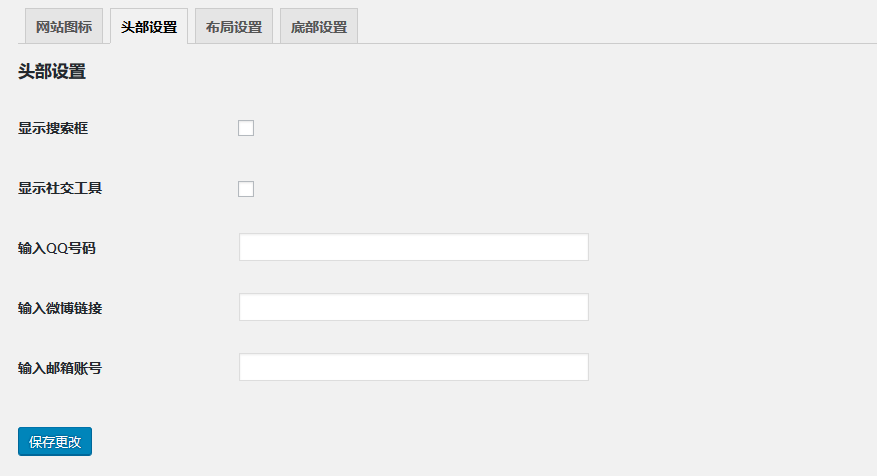 這里可以選擇是否顯示社交工具以及搜索按鈕,開(kāi)啟后將顯示在網(wǎng)站導(dǎo)航條(菜單)上面。