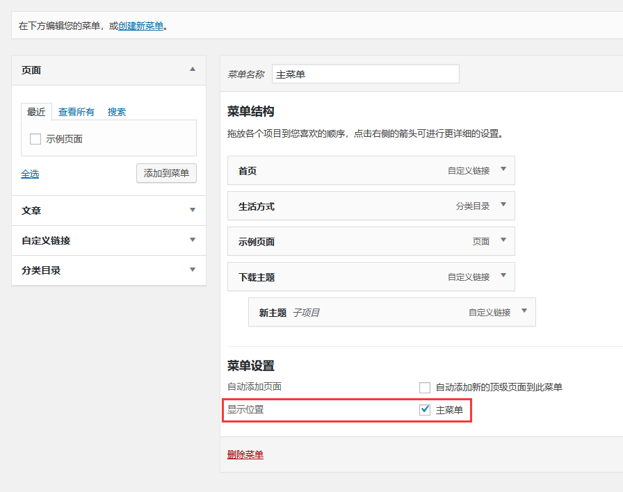 您只需創(chuàng)建菜單并添加要顯示的項(xiàng)目即可,菜單創(chuàng)建完成后,您需要將此菜單分配給一個(gè)可用的顯示位置。