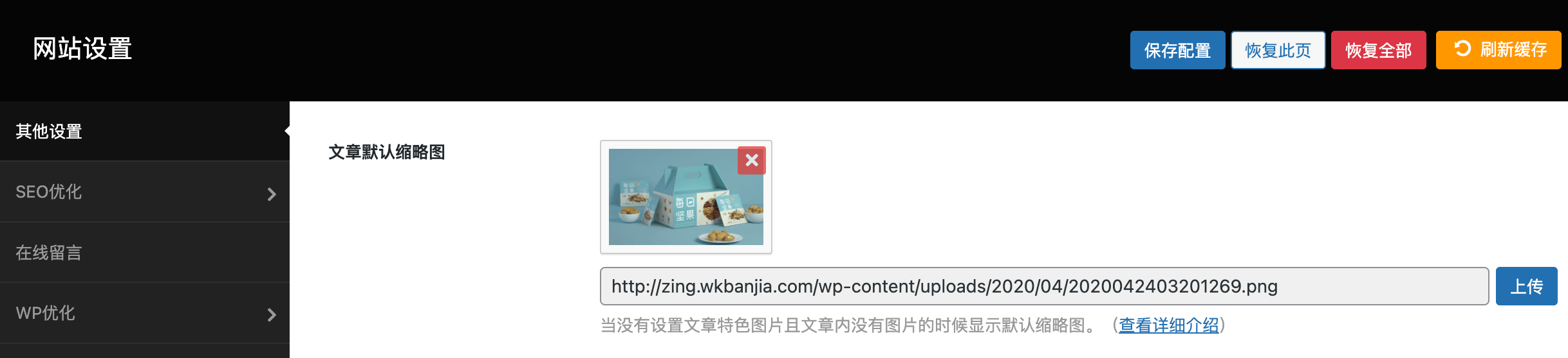 文章默認(rèn)縮略圖設(shè)置在「后臺(tái)-網(wǎng)站設(shè)置-其它設(shè)置-文章默認(rèn)縮略圖」,當(dāng)沒(méi)有設(shè)置文章特色圖片,同時(shí)文章內(nèi)又沒(méi)有圖片的時(shí)候就會(huì)顯示默認(rèn)縮略圖。