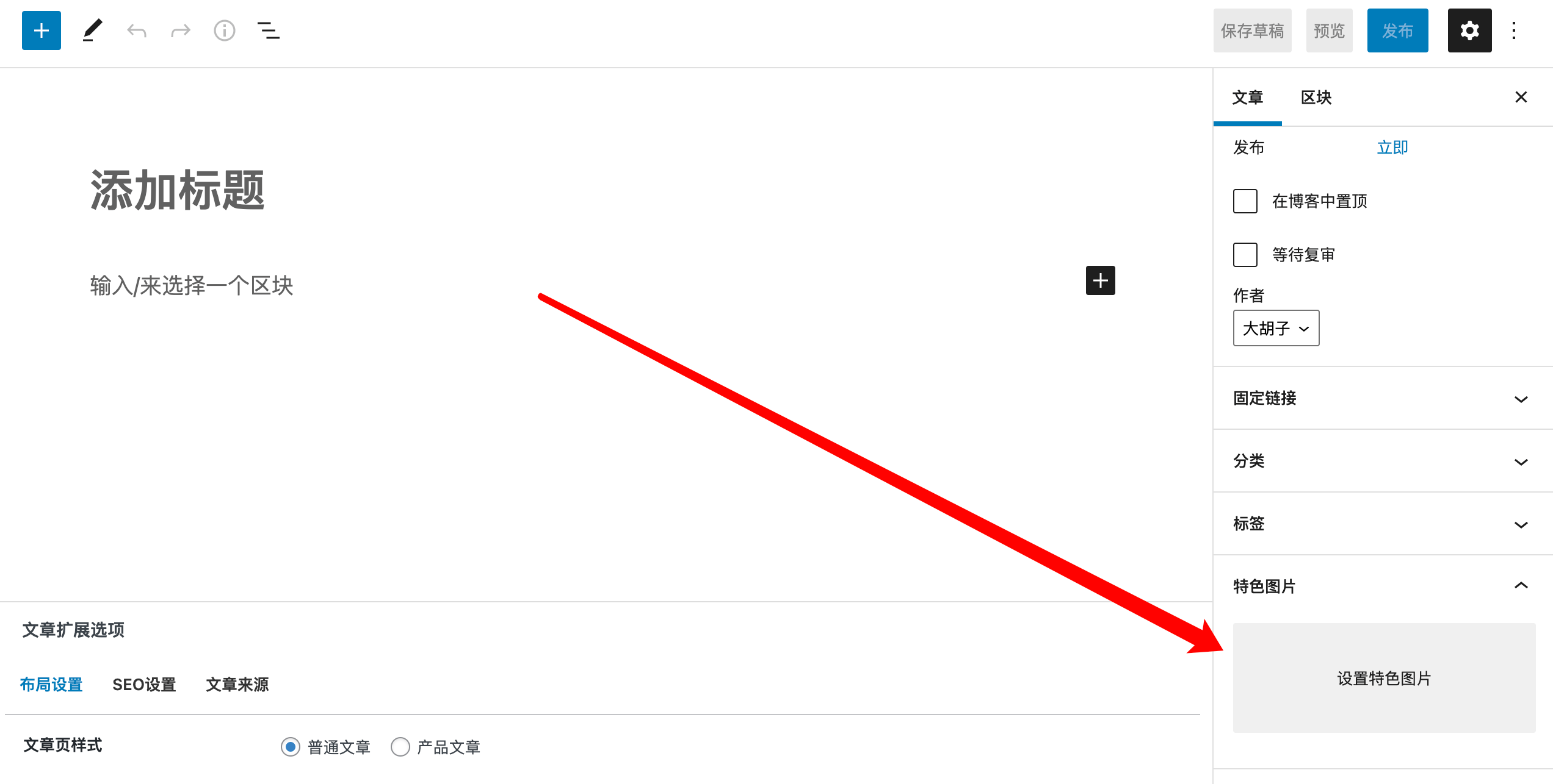 文章特色圖片在編輯文章的時(shí)候,右側(cè)欄可以設(shè)置特色圖片。